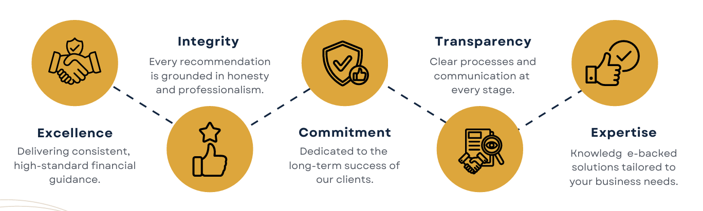 To be a trusted financial advisory partner recognized for clarity, integrity, and excellence empowering businesses with structured solutions that support sustainable growth.